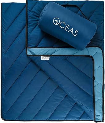 Oceas Outdoor Waterproof Stadium Blanket - Thicker Weather Proof and Windproof Blankets for Camping, Sporting Events, Picnic and Car Use - 100% Waterproof Insulated Blanket and Throws Puffy, Blue