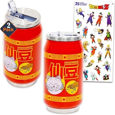Dragon Ball Z Stainless Steel 9oz Water Bottle Set - Bundle of 2 Karin Senzu Beans Travel Thermo Cool Tin Can Tumblers Plus Stickers | Dragon Ball Z Gifts